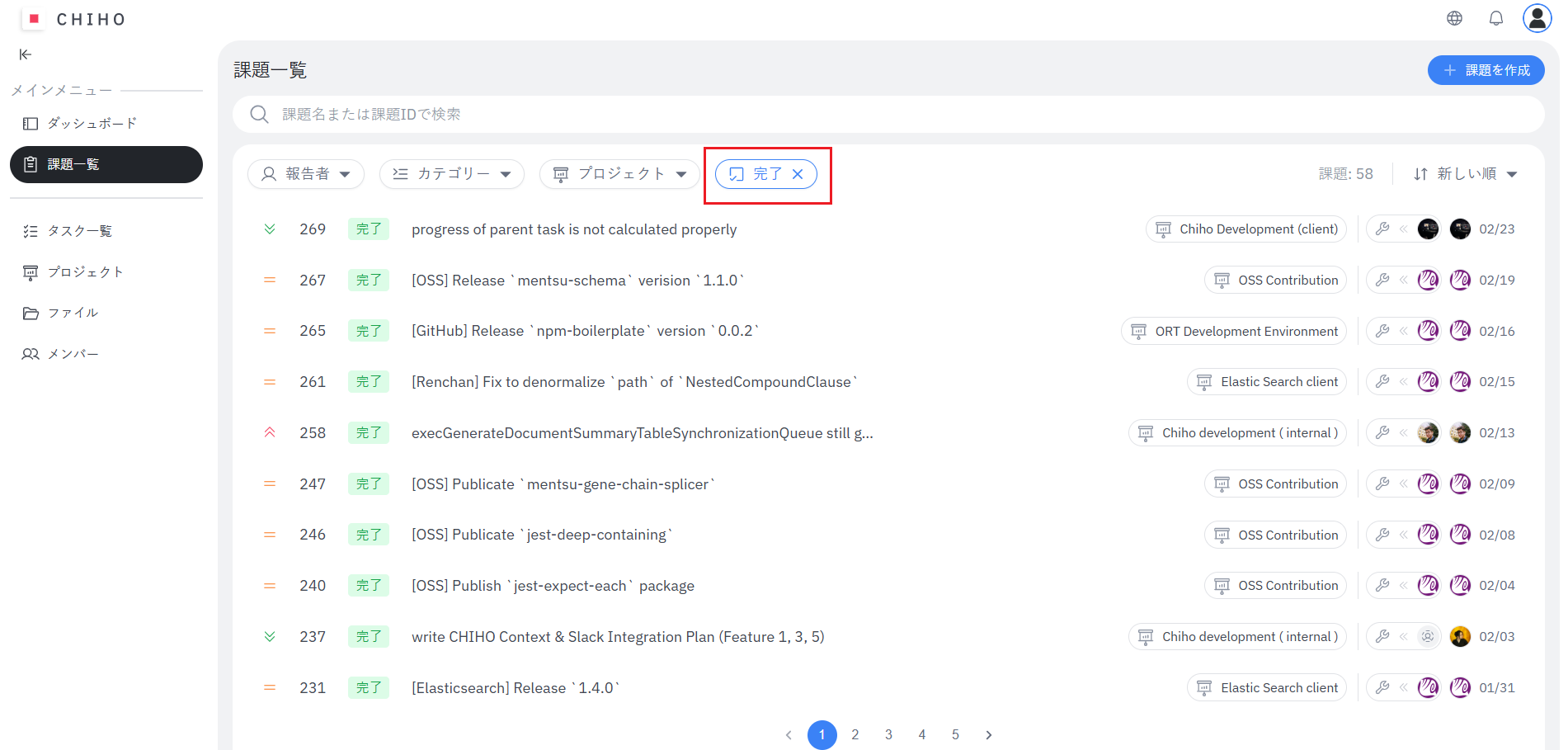 弊社では、専用ツール「Chiho Client」を提供し、プロジェクトのタスクやイシューをリアルタイムで可視化しています。 お客様は、私たちが現在取り組んでいるタスクや直面している課題をいつでも確認できるため、「あの件どうなっていますか?」といった進捗確認の手間はもう必要ありません。